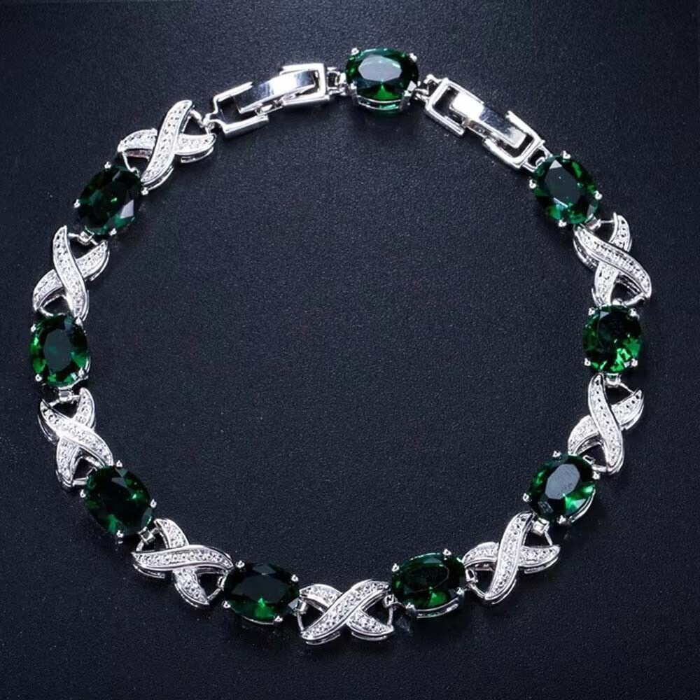 Lab Created Emerald & Diamond 14K White Gold Plated Crystal Bracelets 7.5"