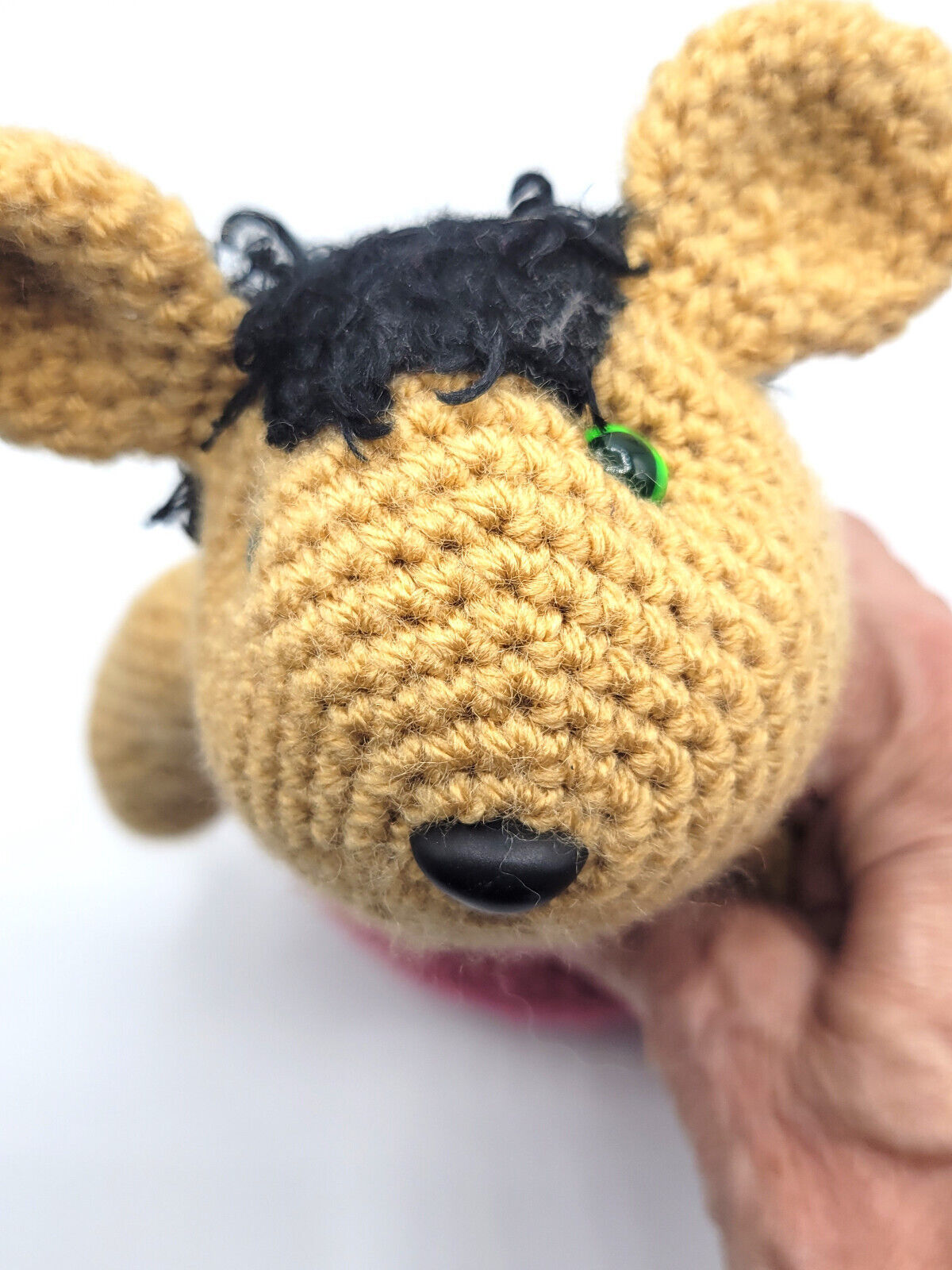? Material: Yarns, plastic eyes nose.