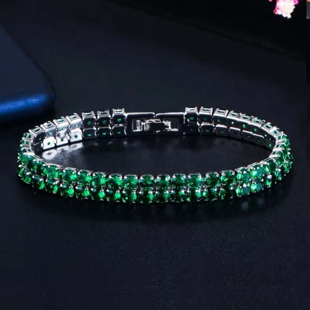 Lab Created Emerald 14K White Gold Plated 2 Row Tennis Link Bracelets 7.5"