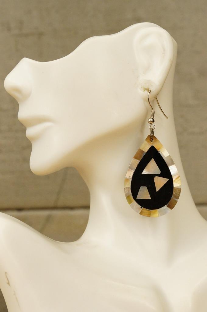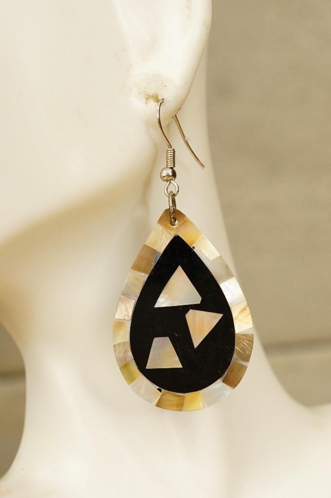 Costume Jewelry MOP Mother of Pearl Shell Inlay Teardop Dangle Pieced Earrings
