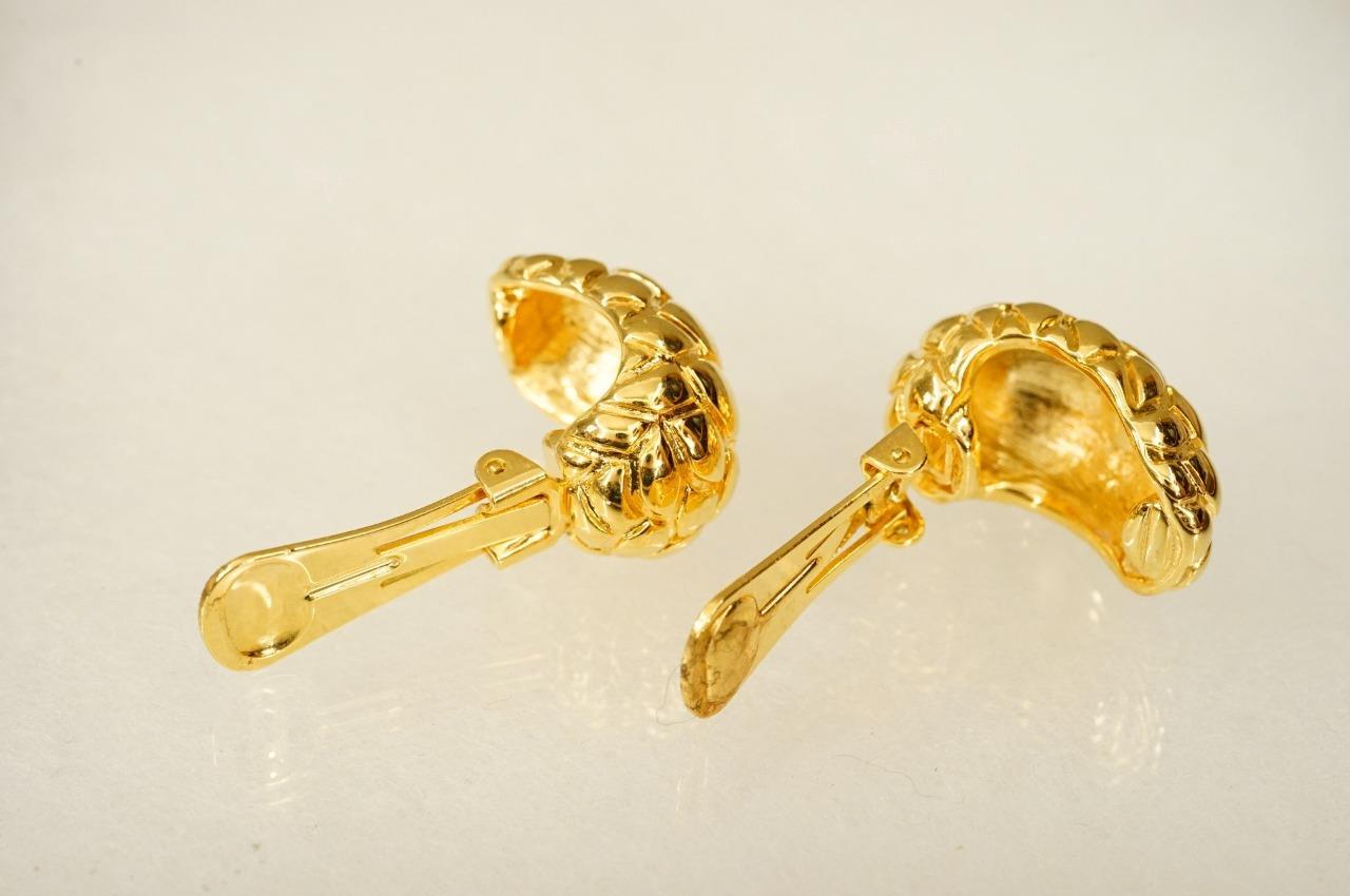 Costume Jewelry KJL Kenneth Lane Gold Tone Scale Pattern Chunky Clip Earrings