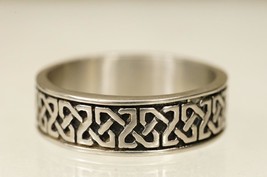 Irish Celtic Knot Pattern Jewelry 7MM Wide Band Ring Stainless Steel Size 15. No smoke or pet odors.