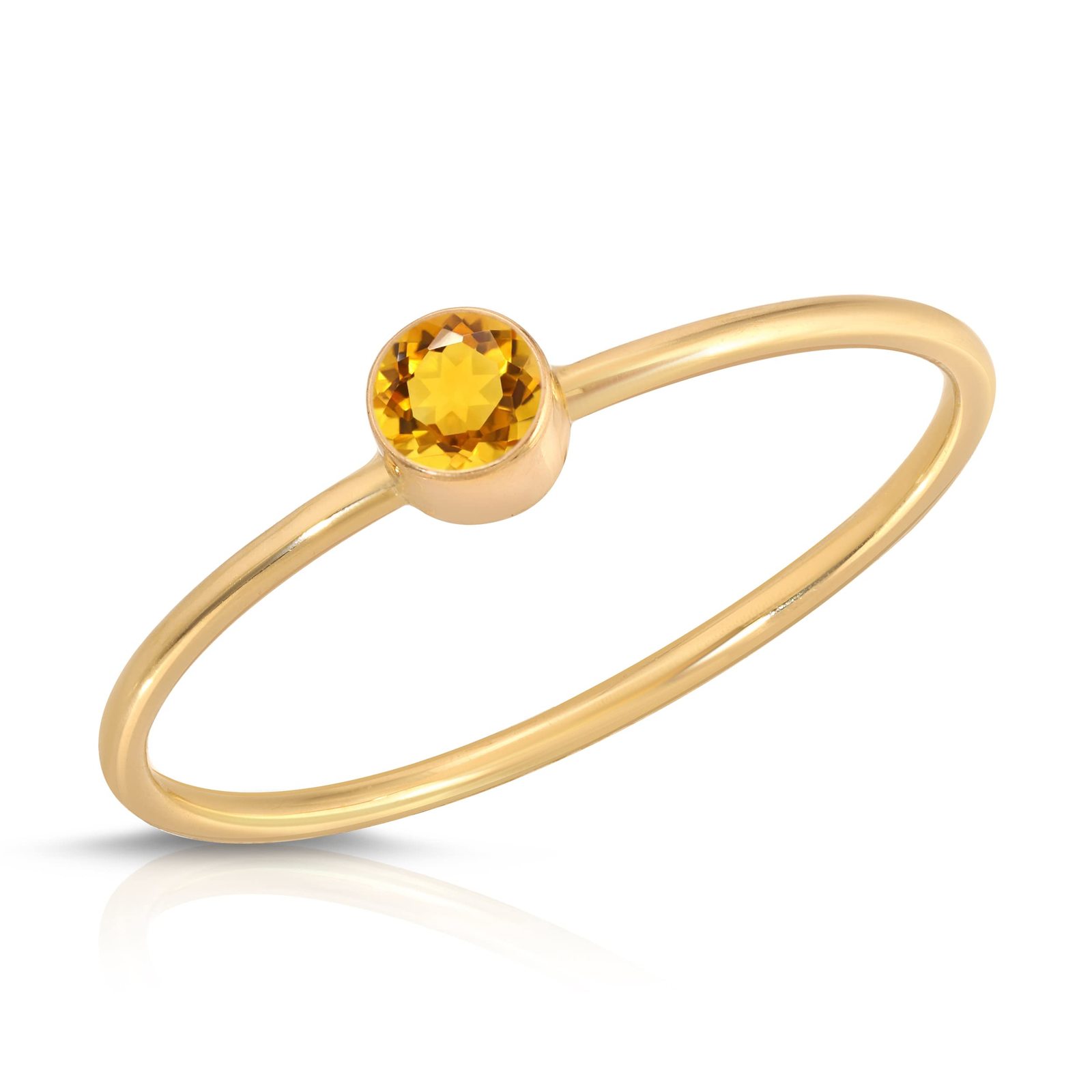 Galaxy Gold GG 14K Solid Yellow Gold Natural Citrine Round Bezel Set Ring for Wo