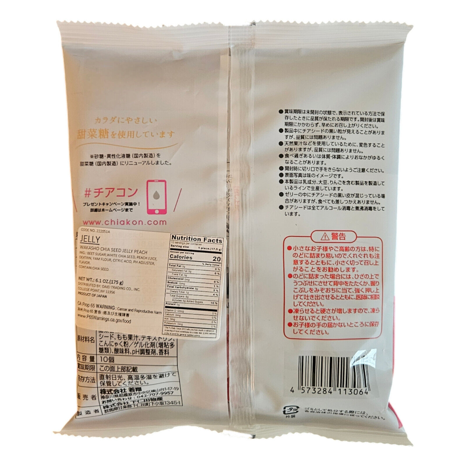 Wakasho Chia Seed Jelly - Peach Flavor 6.1oz / 175g (3 Pack, 18.3oz)