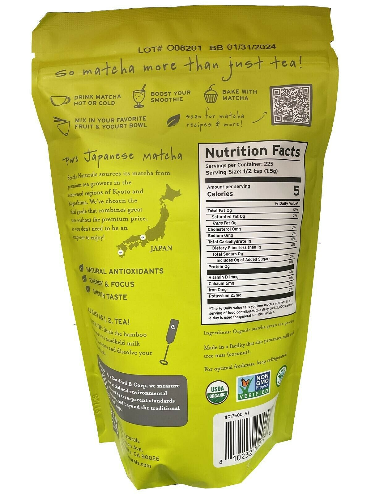 SENCHA NATURALS ORGANIC MATCHA JAPANESE GREEN TEA POWDER VALUE 12 OZ. PACK.