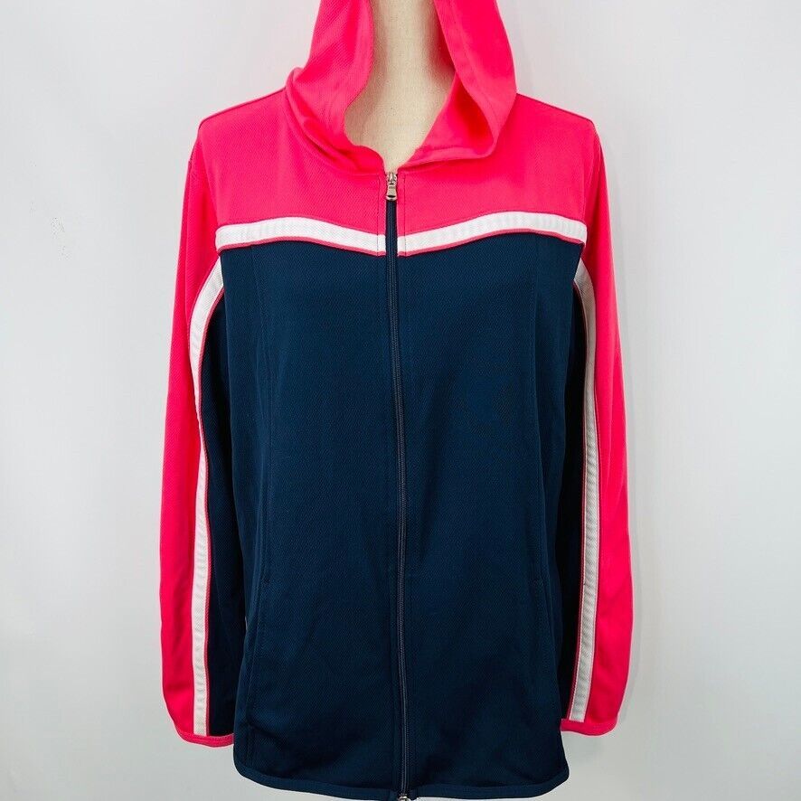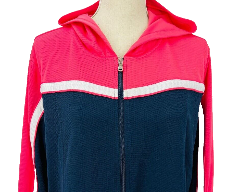 SJB St Johns Bay XL Track Jacket Hood Pockets Full Zip Long Sleeve Pink Blue