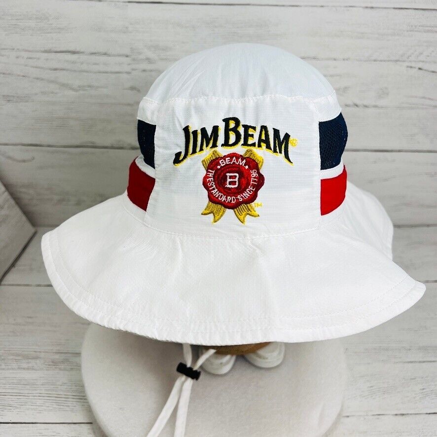 Jim Beam Whiskey Bucket Hat White Mesh Floppy Gilligan The Standard Since 1795