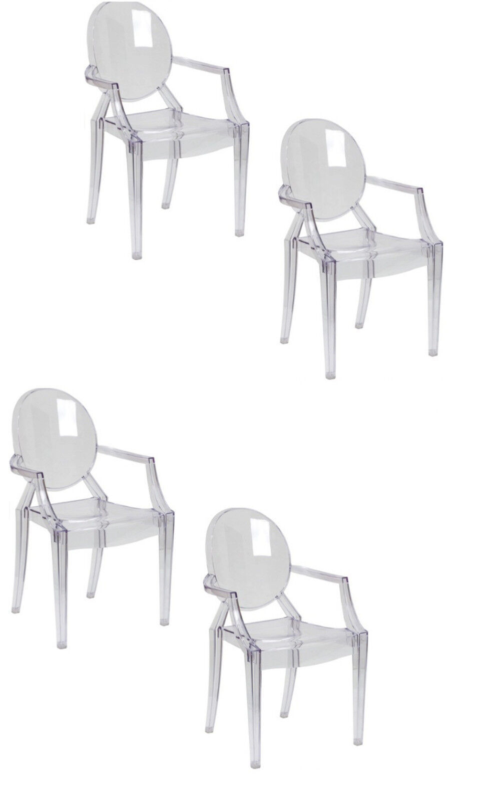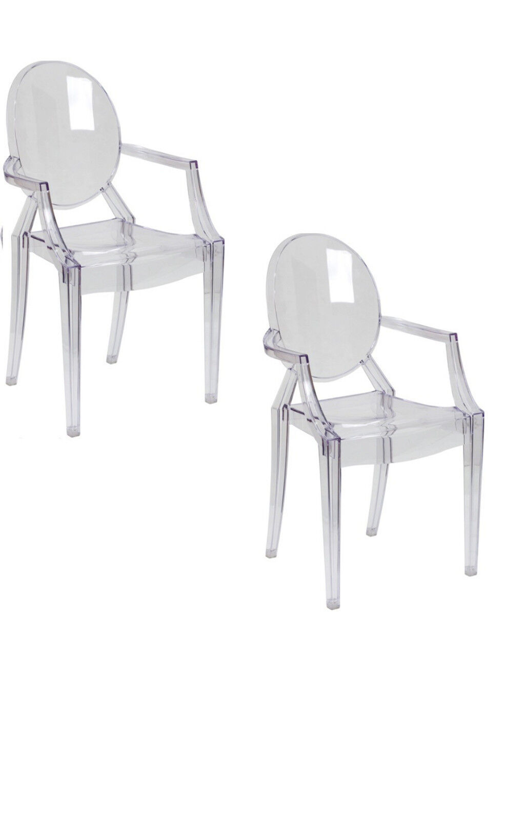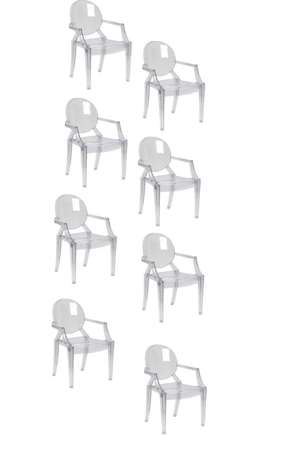 1, 2, 4, 6 or 8 Casper Ghost Dining Arm Chair Clear Polycarbonate In or Outdoor