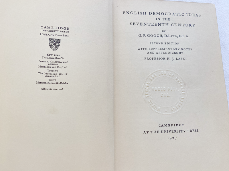 1927 HC English Democratic Ideas in the Seventeenth Century by Gooch, G. P.