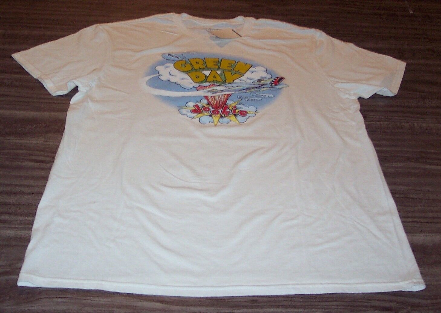 This is a Vintage Style GREEN DAY DOOKIE T-shirt. It is a size LARGE, and it is NEW with the tag. It is 21 1/2 inches from armpit to armpit and 30 inches in length. Combine auctions to save on shipping. AG