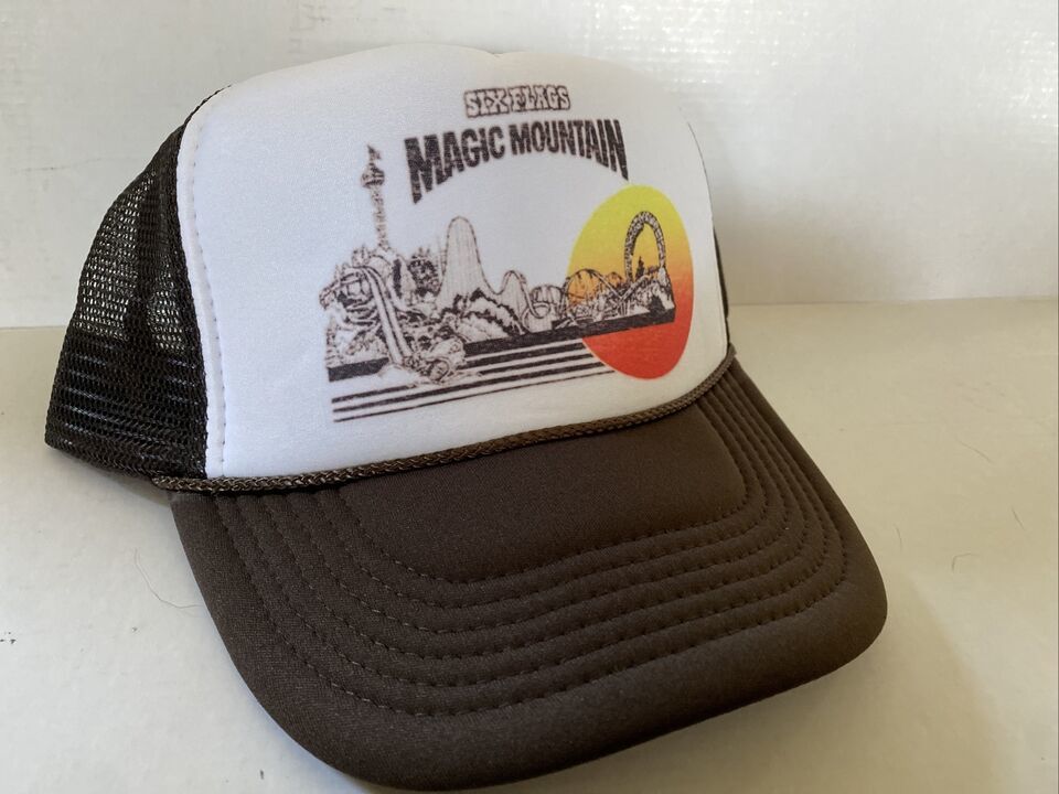 Vintage Magic Mountain Hat Six Flags Trucker Hat snapback Brown Vacation Cap