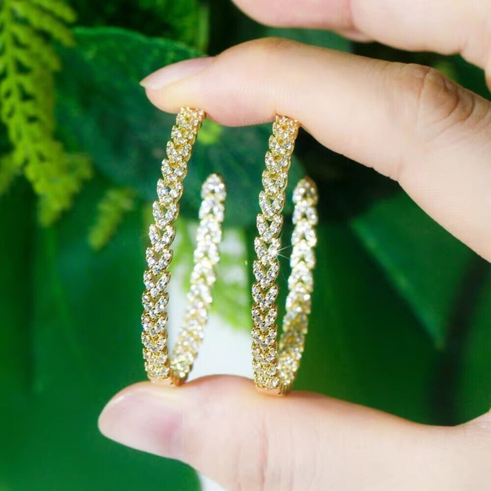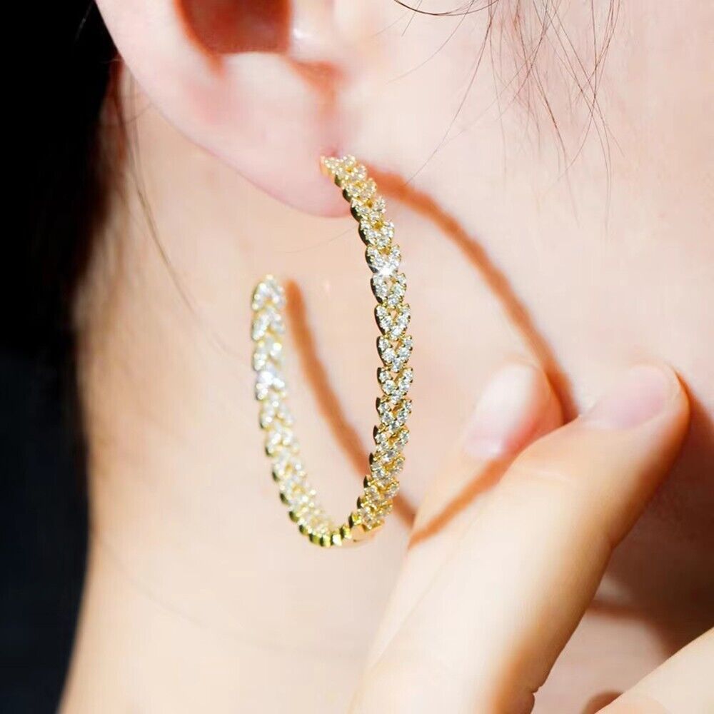 Hot Selling Lab Created Diamond 14K Yellow Gold Plated C Shaped Hoop Earring