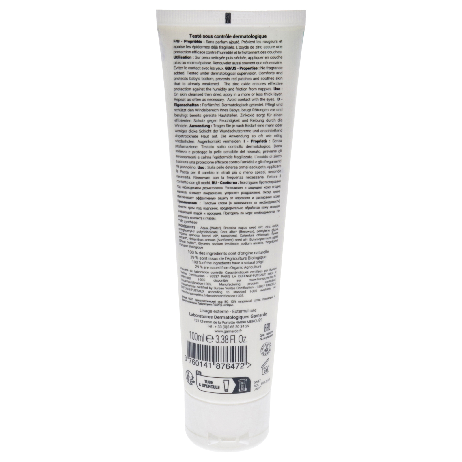 Dermatologically tested, certified organic, 100 percent natural, this cream comforts and protects babys bottom. It prevents redness and soothes already weakened skin. Zinc oxide provides effective protection against moisture and diaper friction. No added fragrances.
