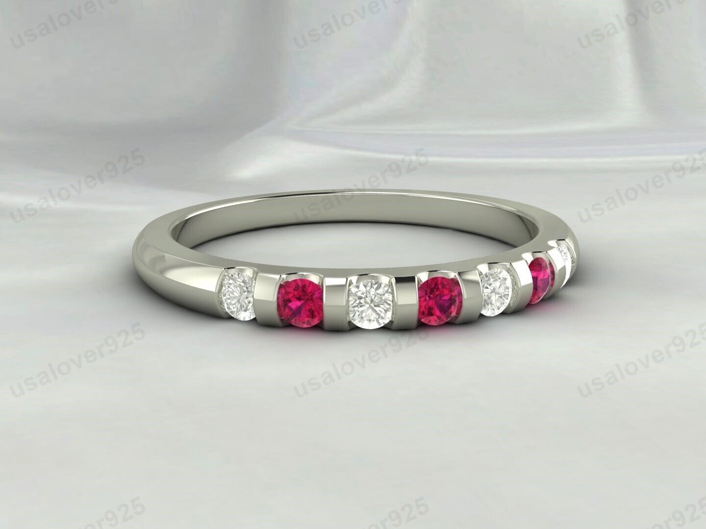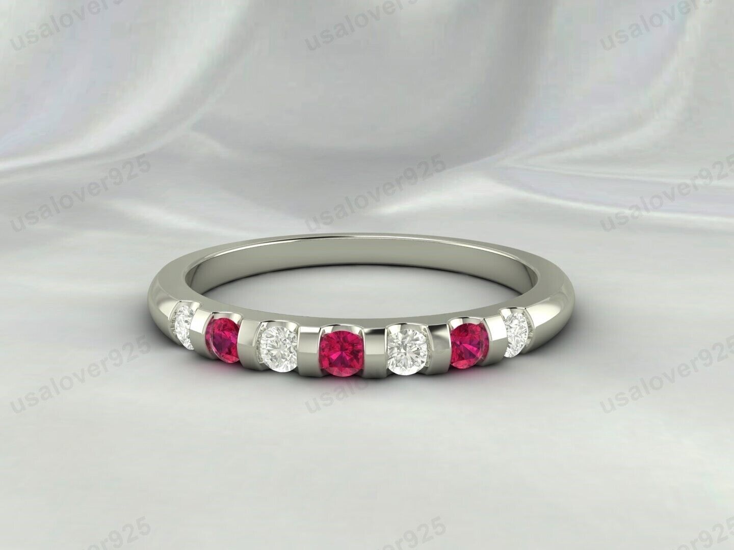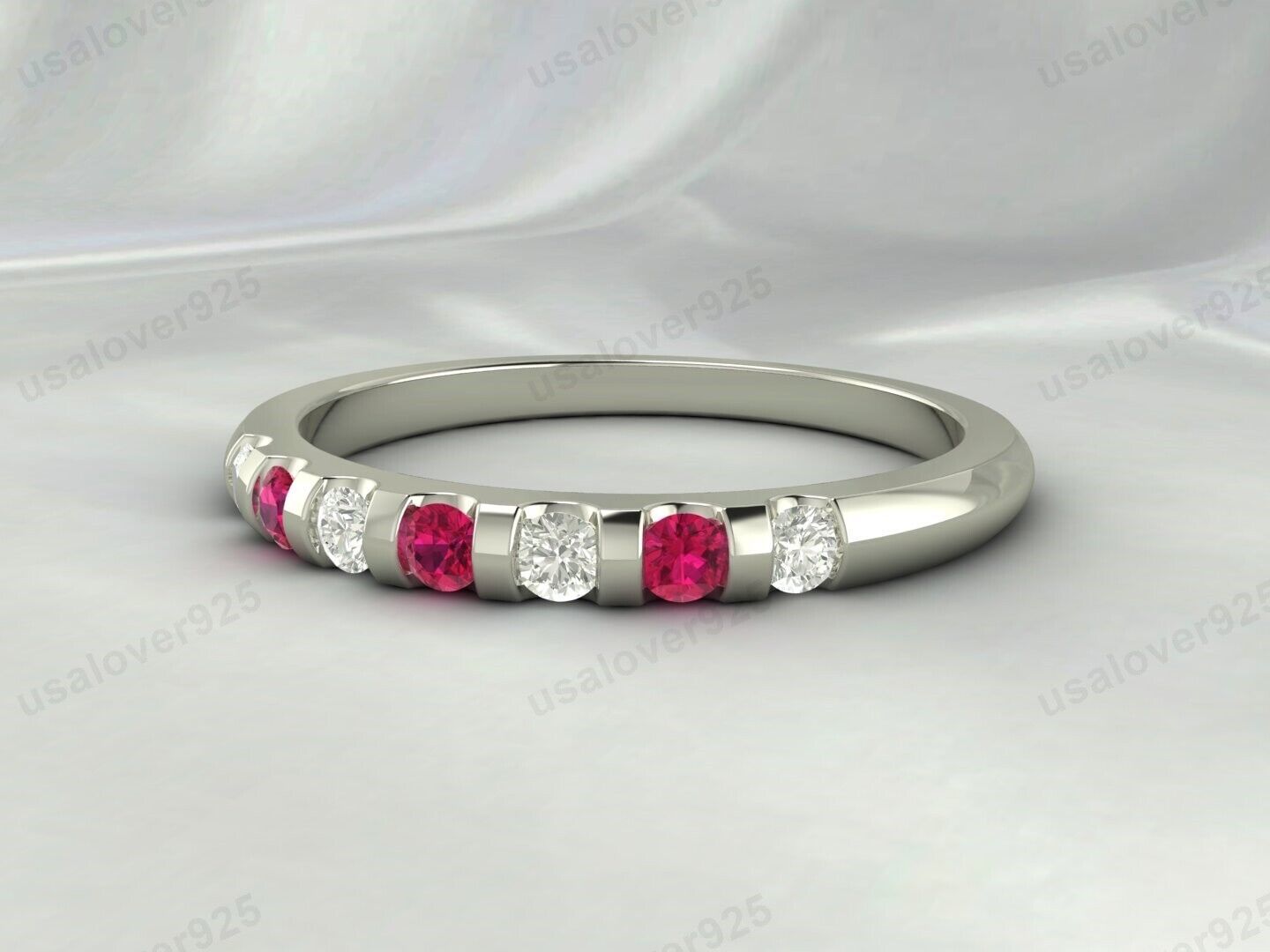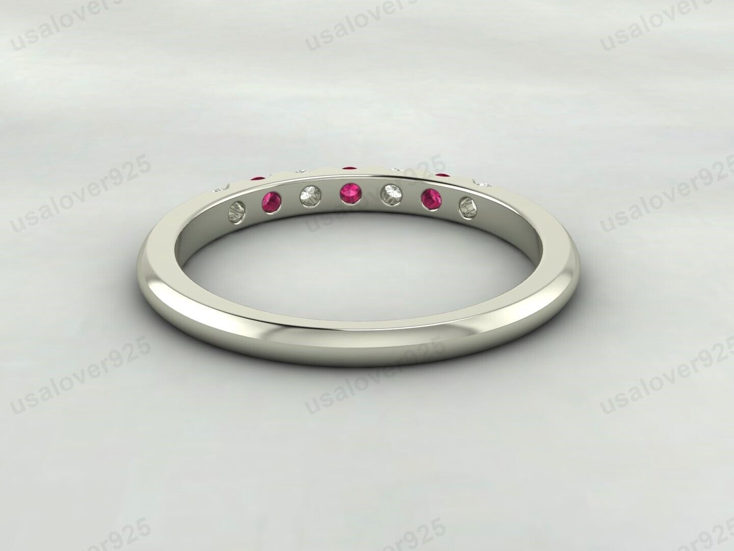 Ruby Gemstone Eternity Band Ring, 925 Sterling Silver Dainty Women's Jewelry