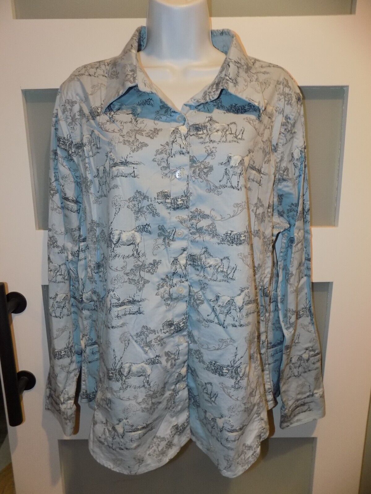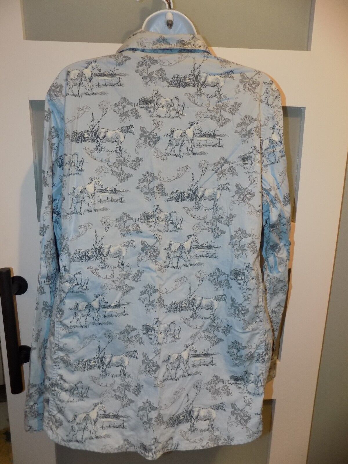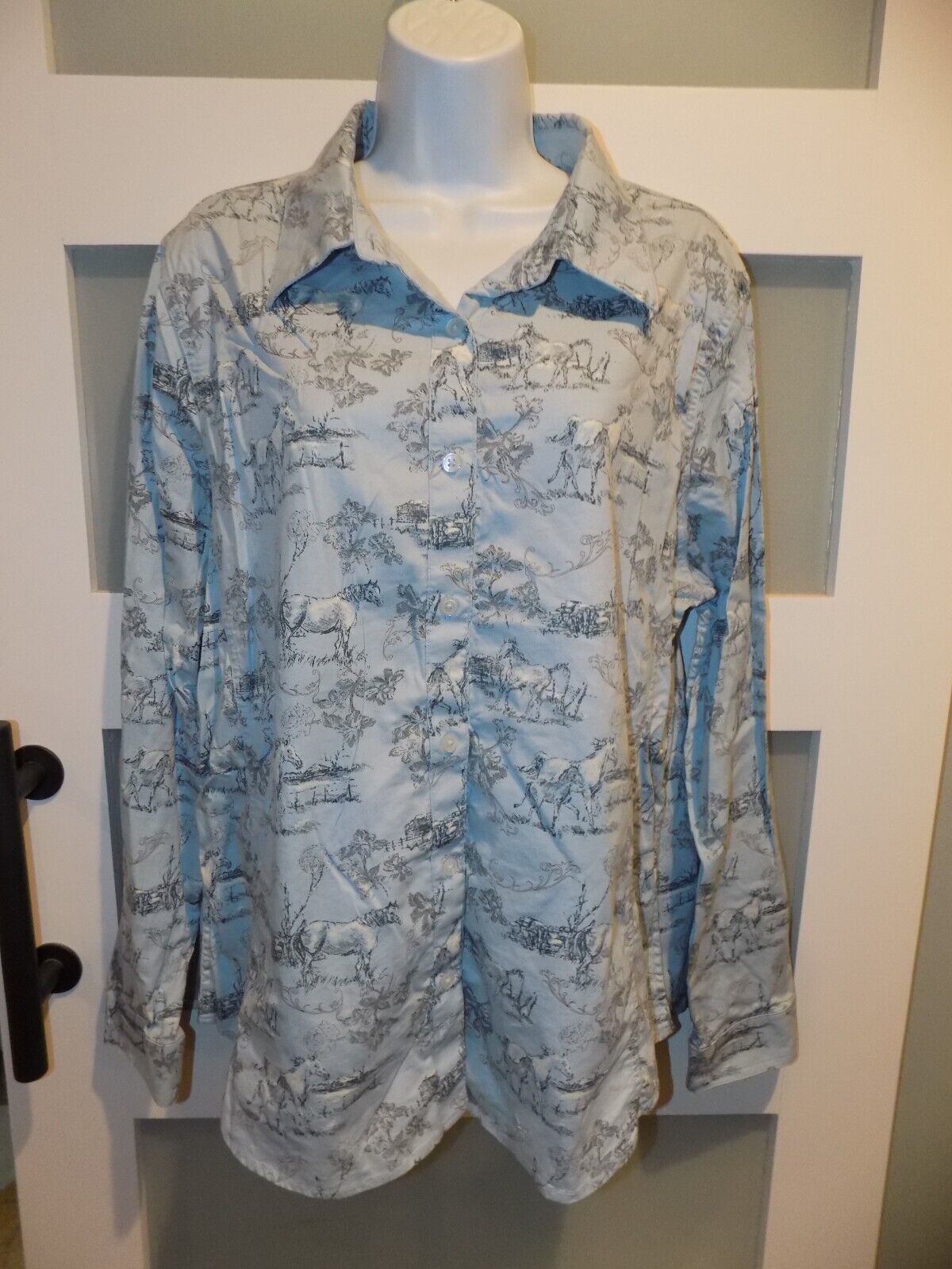 Bit & Bridle For Her Western Wear Blue Long Sleeve w/ Horses Size XL NWOT