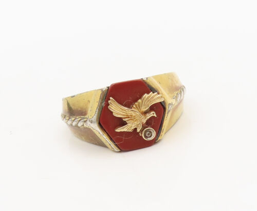 10K GOLD 925 Silver - Vintage Flying Bird Cough Diamond Ring Sz 13.5 - RG27234