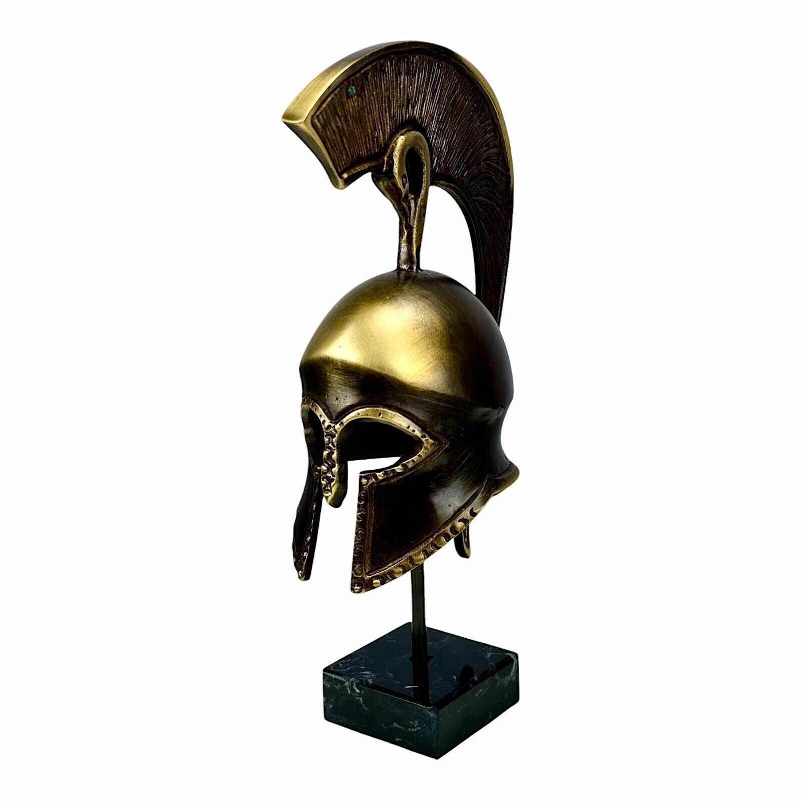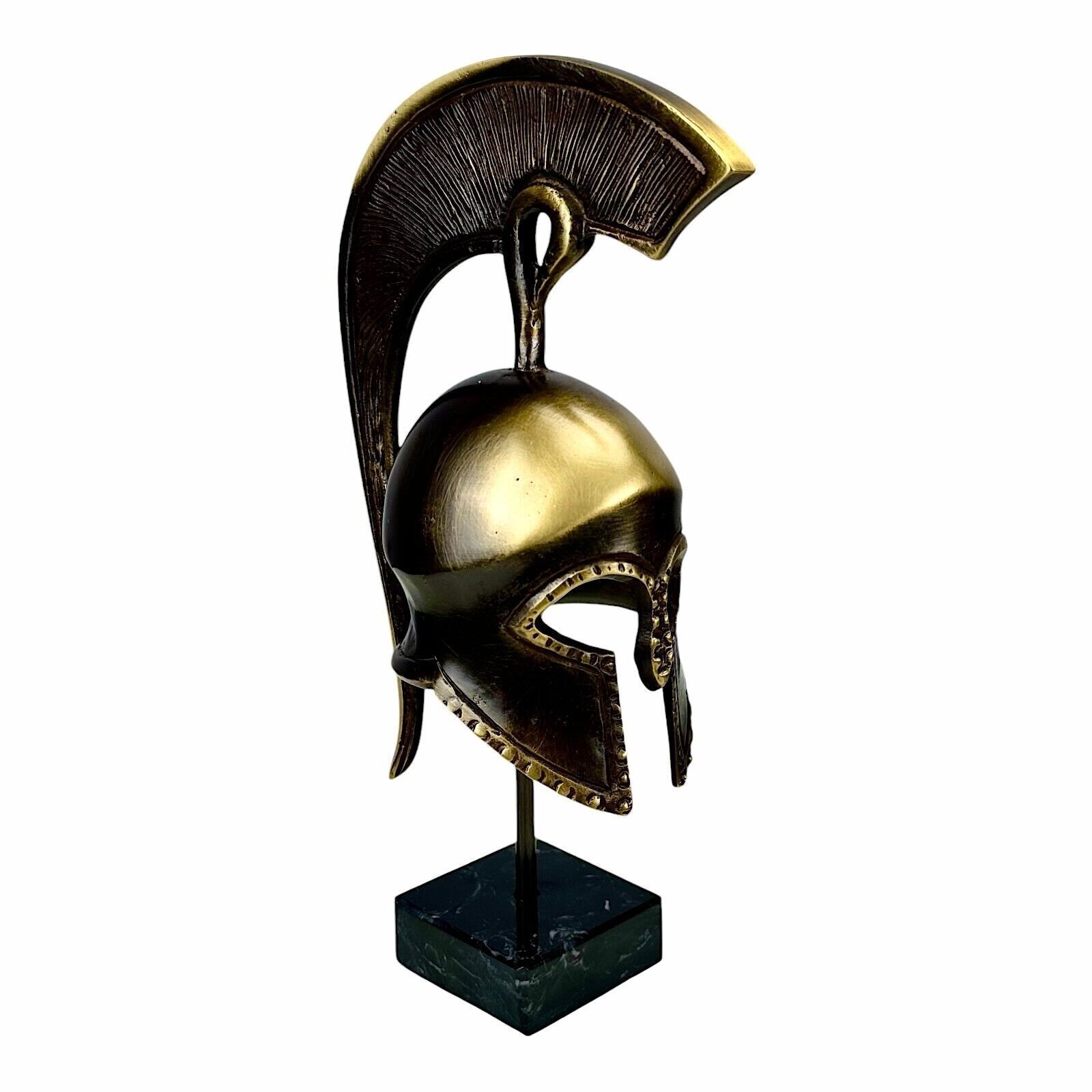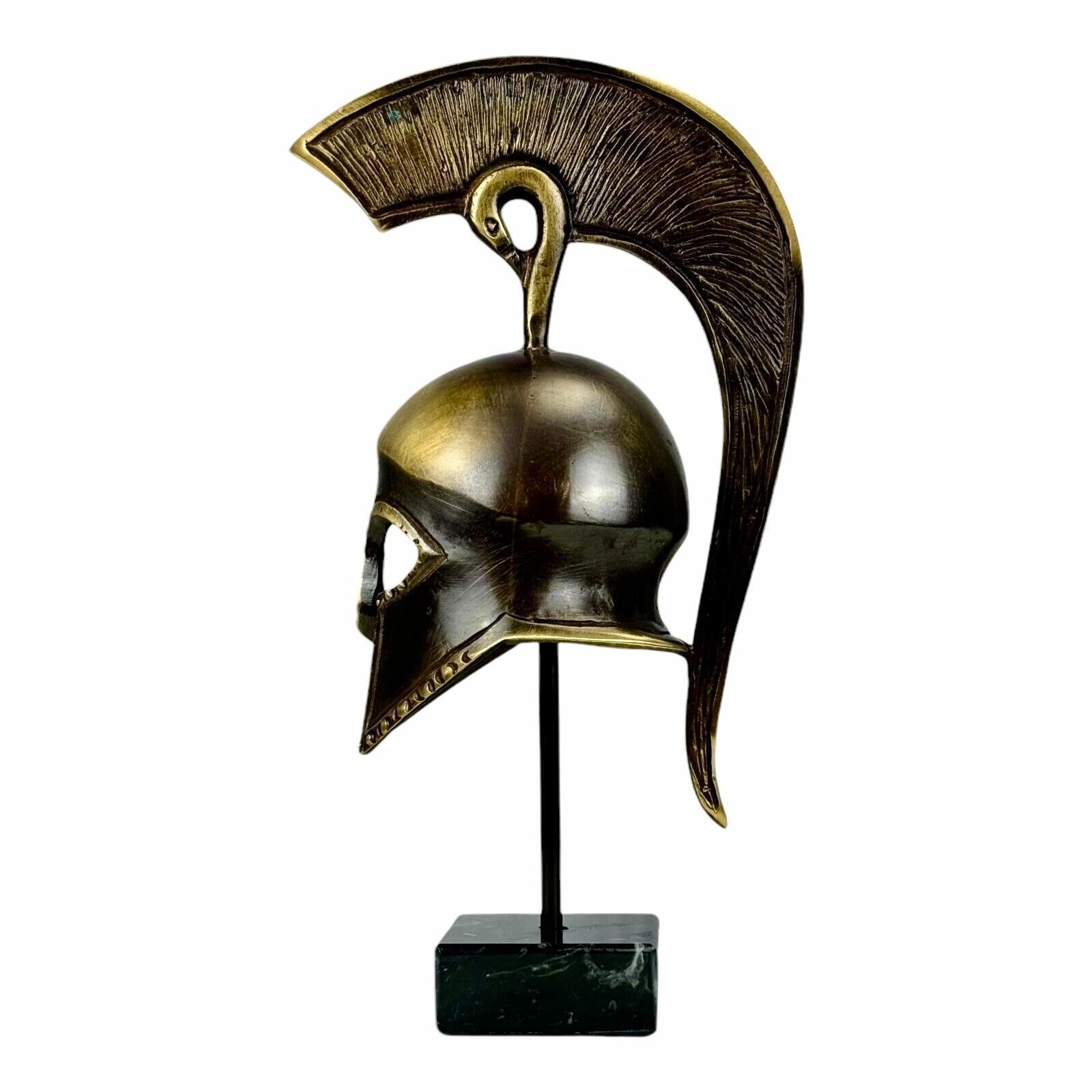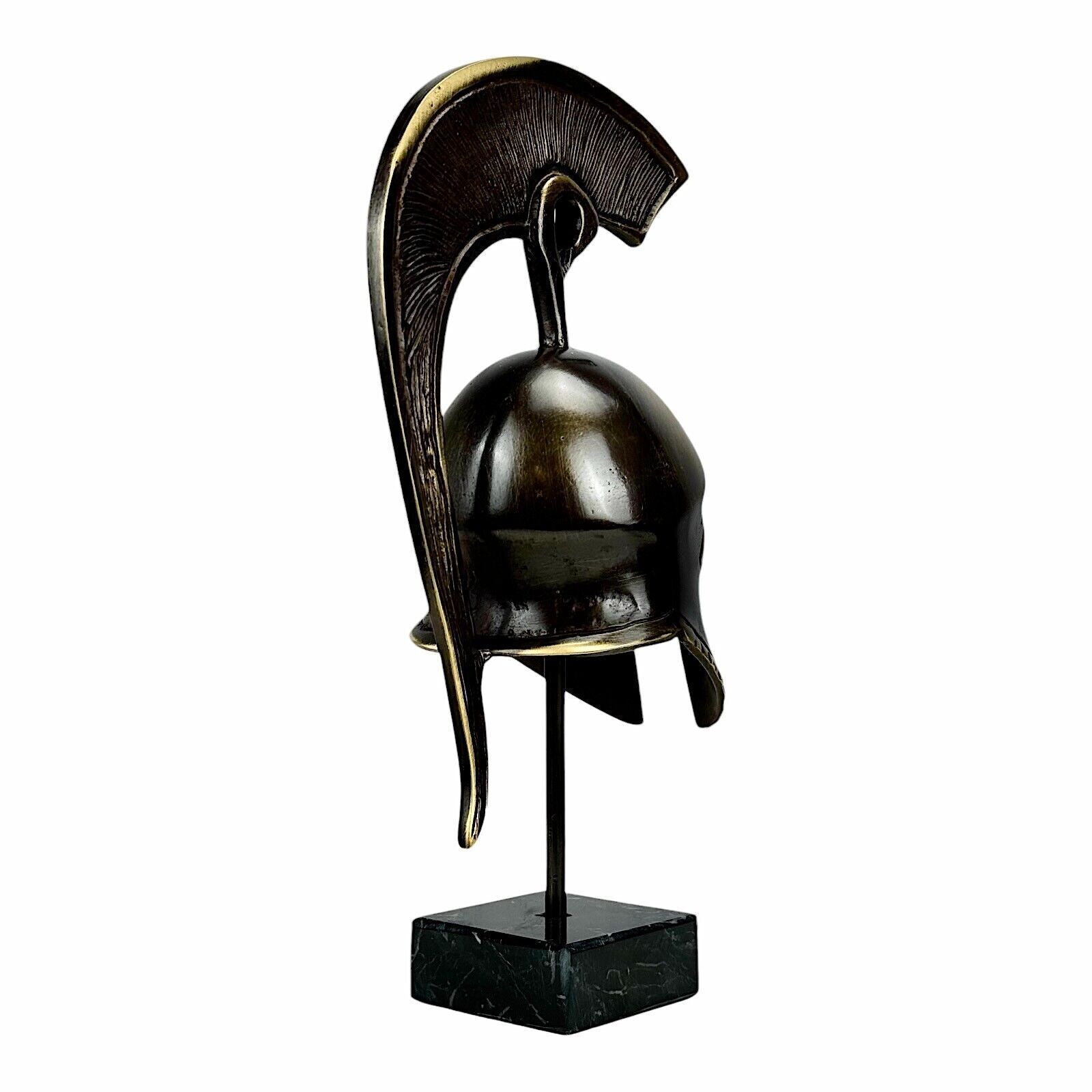 Casque grec ancien sculpture d'art en metal bronze veritable faite a la main en Grece 8,6 pouces