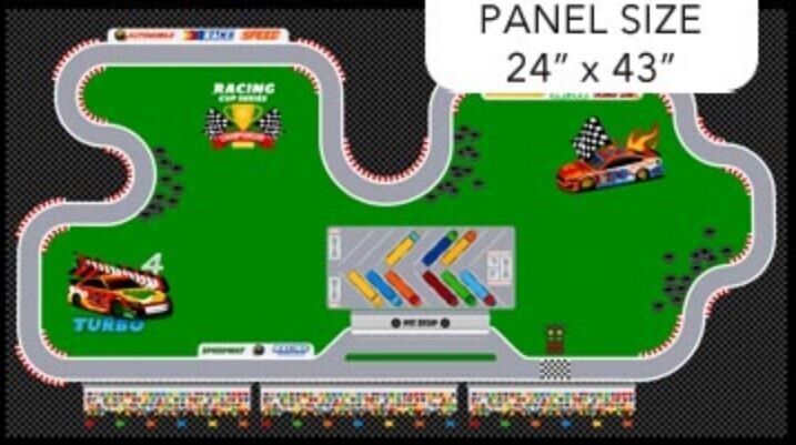 24" X 44" Panel Turbo Speed Kids Race Track Panel Cotton Fabric Panel D785.54