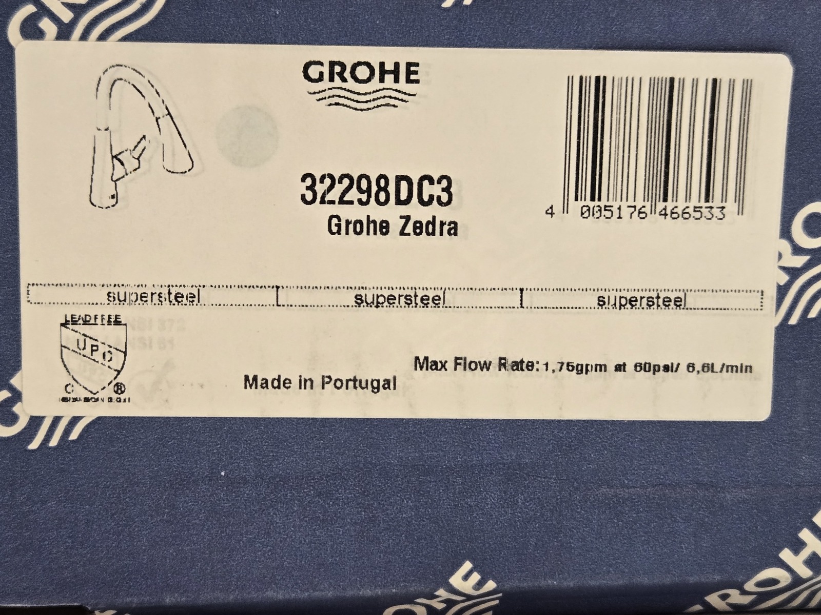 Grohe 32298DC3 Zedra Single Handle Pull Down Kitchen Faucet - SuperSteel