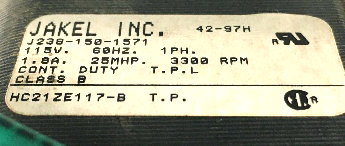 This is Durham J238-150-1571 Draft Inducer Blower Motor HC21ZE117-B 115V 3300RPM used refurbished part.