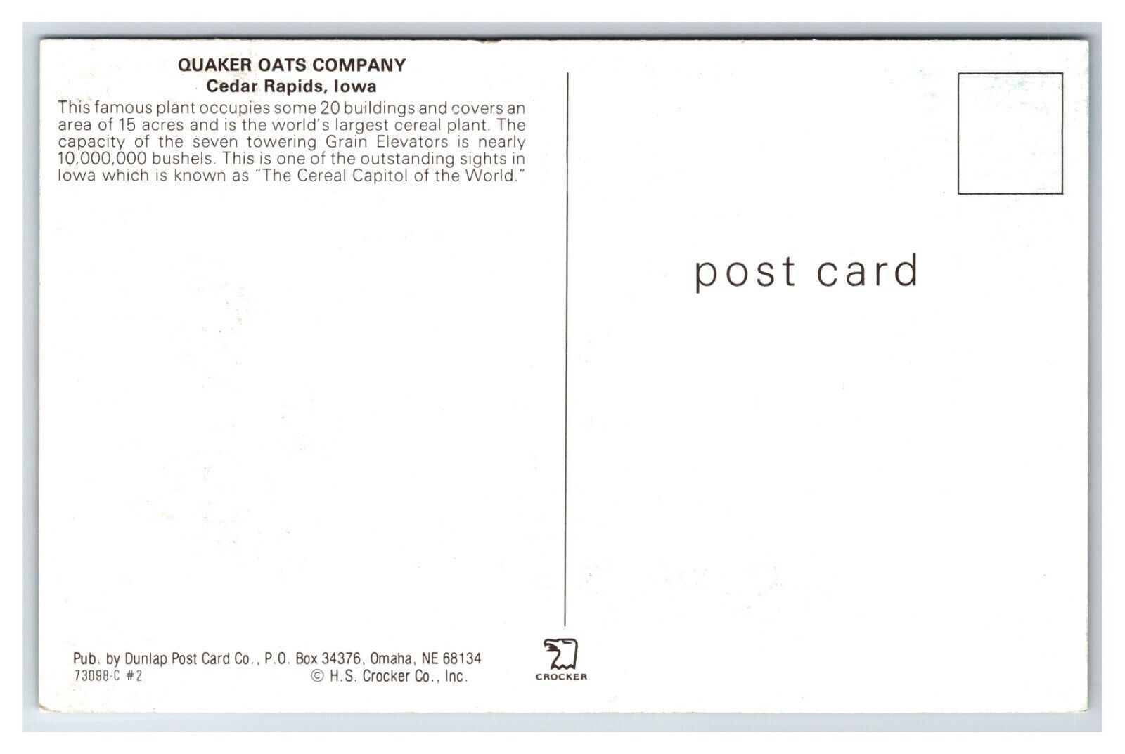 Quaker Oats Company Plant Cedar Rapids Iowa IA UNP Chrome Postcard J20