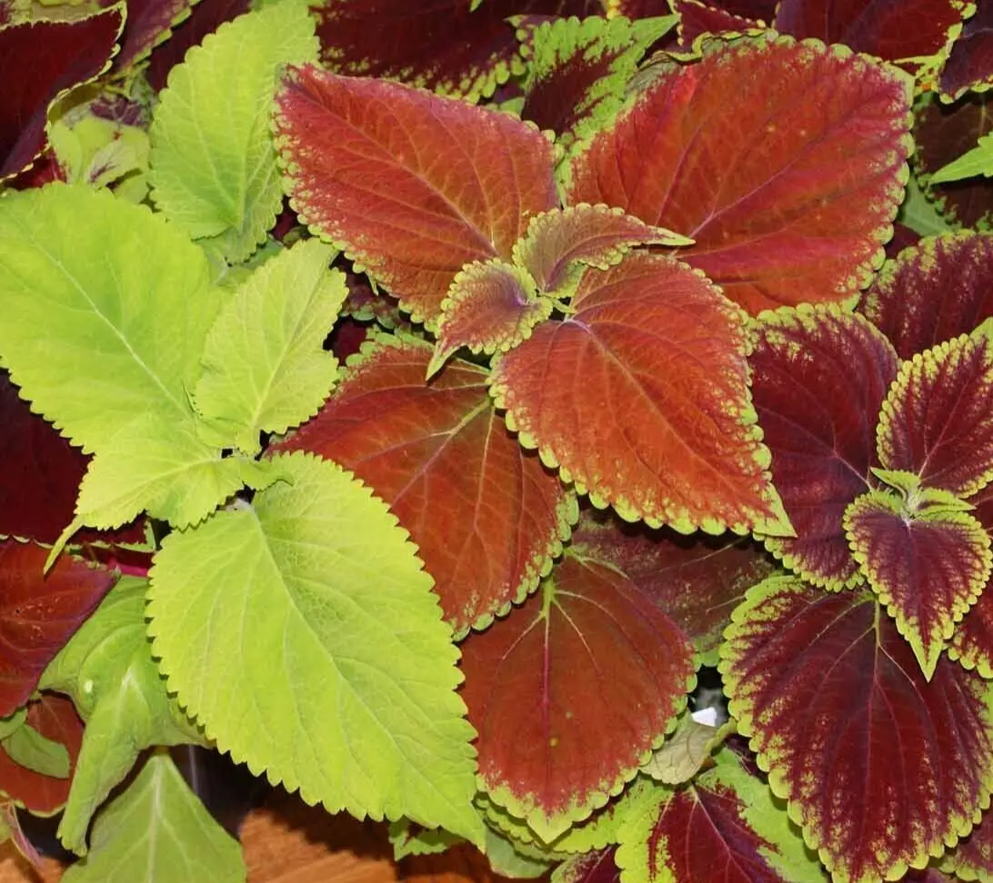 100+ RAINBOW COLEUS SEEDS -- "PAINTED LEAVES" -- ANNUAL FLOWER -- MIXED COLORS OF PINKS, REDS, AND GREENS. GREAT PLANT FOR CONTAINERS. CAN BE GROWN INDOORS AND OUTDOORS. PLANT CAN BE KEPT ALIVE FOR MANY YEARS IF KEPT INDOORS. PLANT PREFERS MOIST SOIL. PLANT WILL NEED CONSISTENT WATER IN THE SUMMER MONTHS. PINCH OFF TOPS OF STEMS TO ENCOURAGE BUSHY GROWTH.