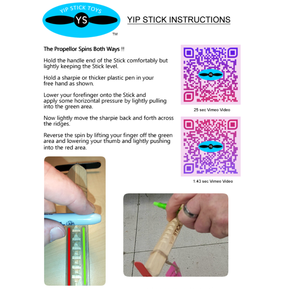 ships with instructions and QR video links or visit yipsticktoys for videos