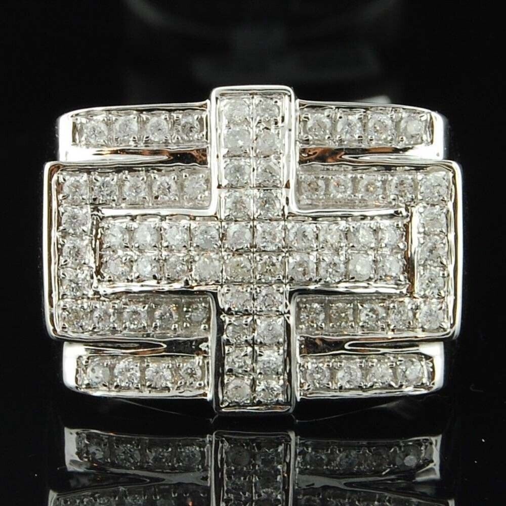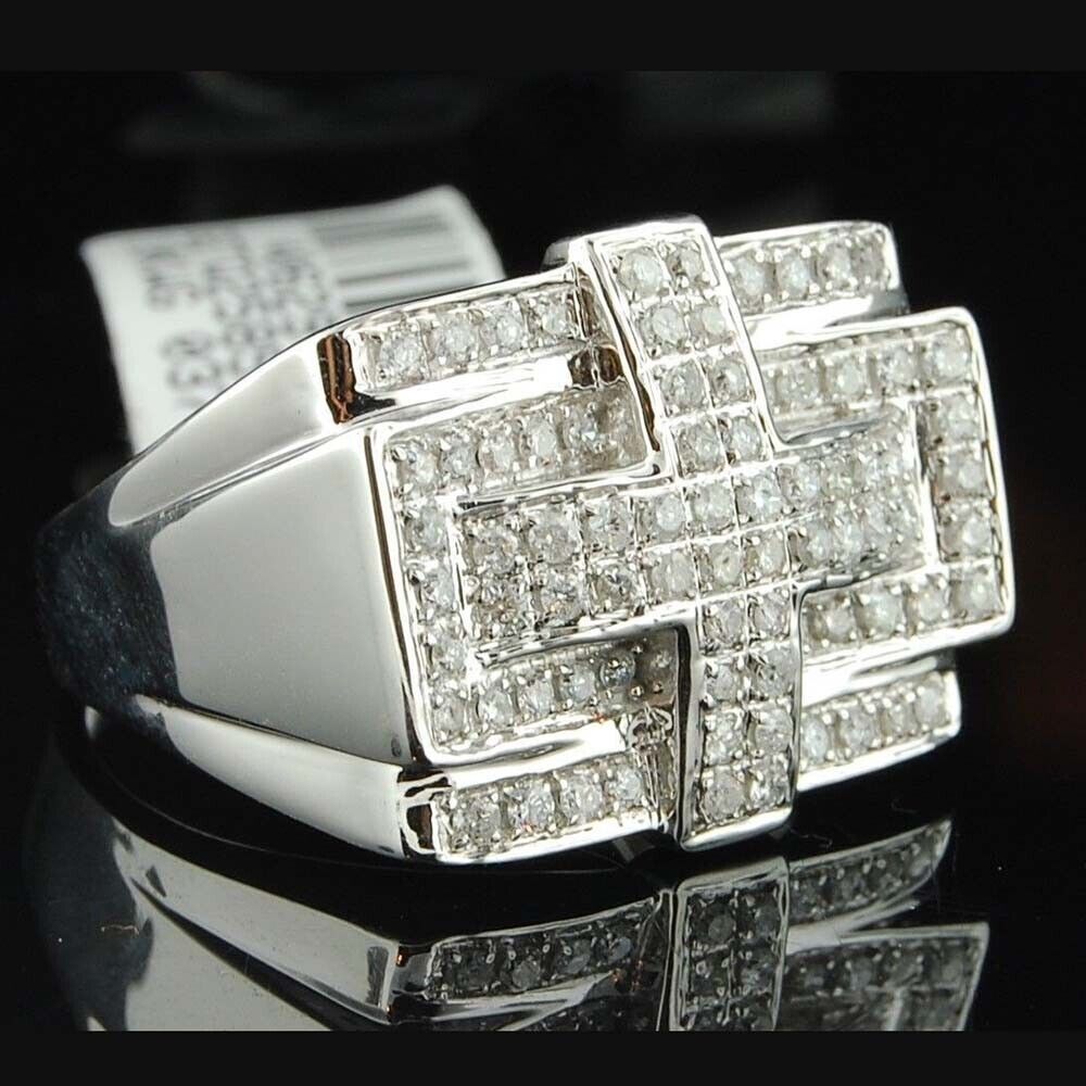 1 Ct D/FL Real Moissanite 14K White Gold Plated Statement Cross Pinky Men's Ring