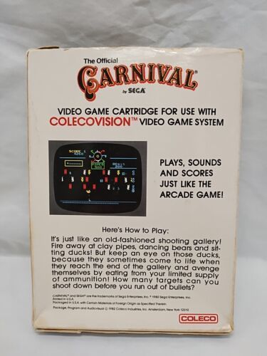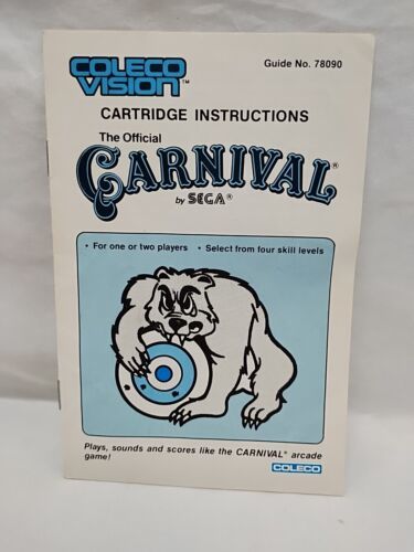 Vintage Coleco Vision The Official Carnival Sega Video Game And Manual