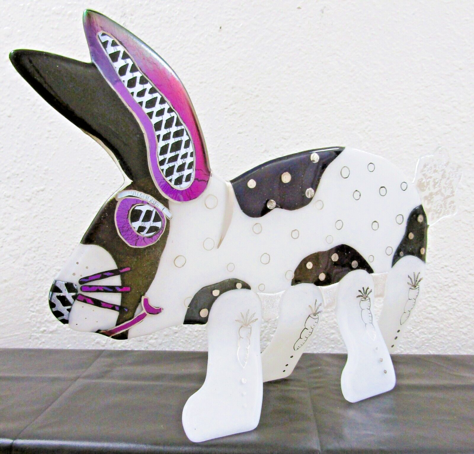 Mexican Studio Art Glass Day of the Dead Single Piece Standing Rabbit Glass Sculpture