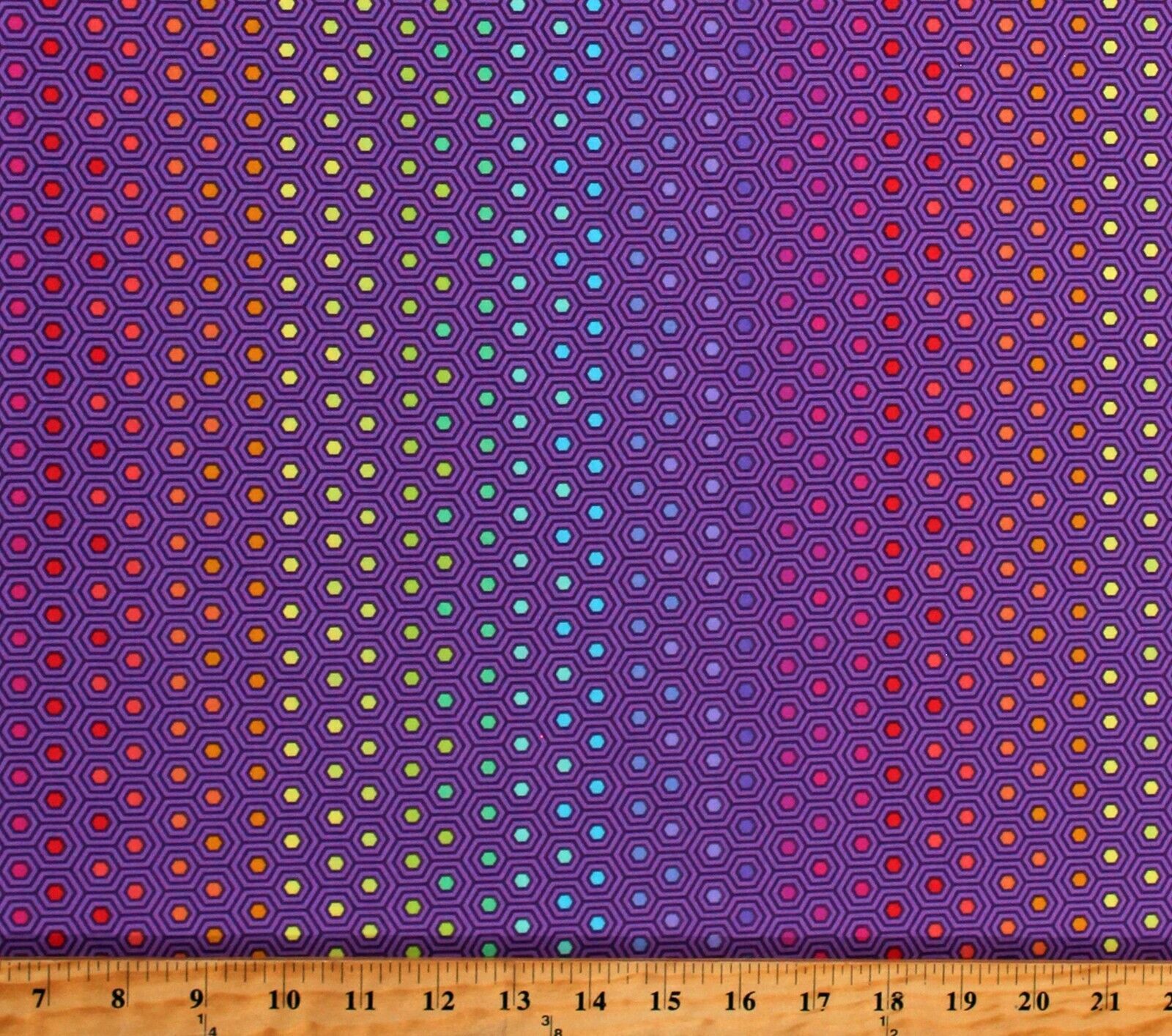 Cotton Tula Pink Hexagons Hexy Rainbow Purple Fabric Print by the Yard D409.17