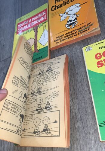 This lot of vintage Peanuts books is a must-have for any fan of Charles M. Schulz's beloved comic strip. With five paperback books, each featuring Snippy Charlie Brown and the gang, this collection is perfect for both young readers and nostalgic adults. Published by Fawcett Crest, these books are sure to bring back fond memories and provide hours of entertainment. The books are in good overall condition with some signs of wear, making them a great addition to any bookshelf or collection.