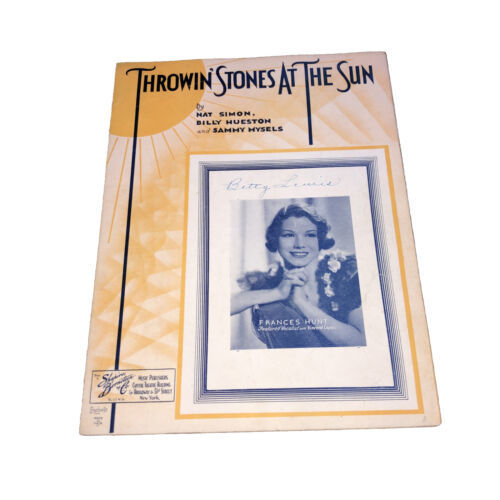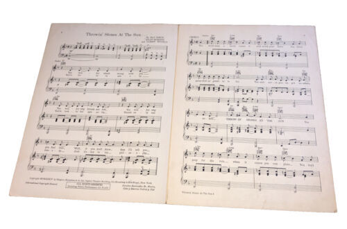 This vintage sheet music from Shapiro Bernstein features the classic tune "Throwin Stones At The Sun," written by Nat Simon and others. It's perfect for collectors or musicians looking to add some vintage flair to their collection. The format is sheet music and the genre is musicals, making it a great addition to any sheet music or musical collection.