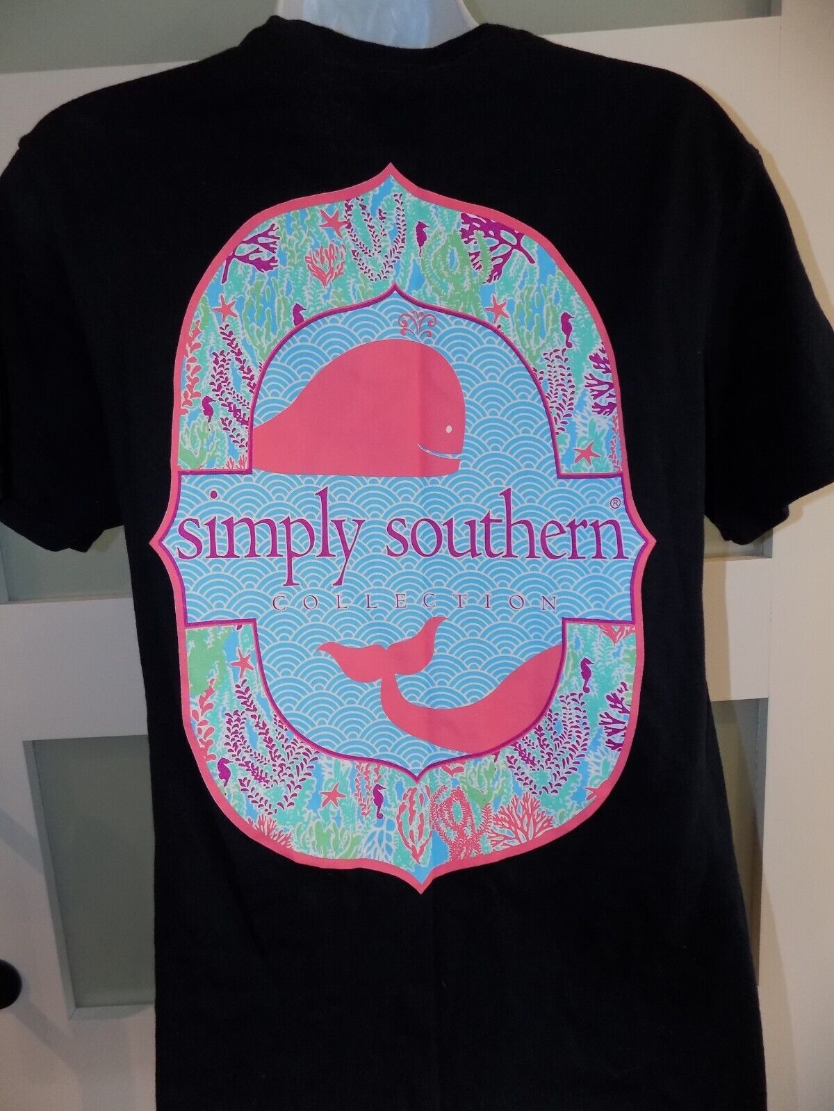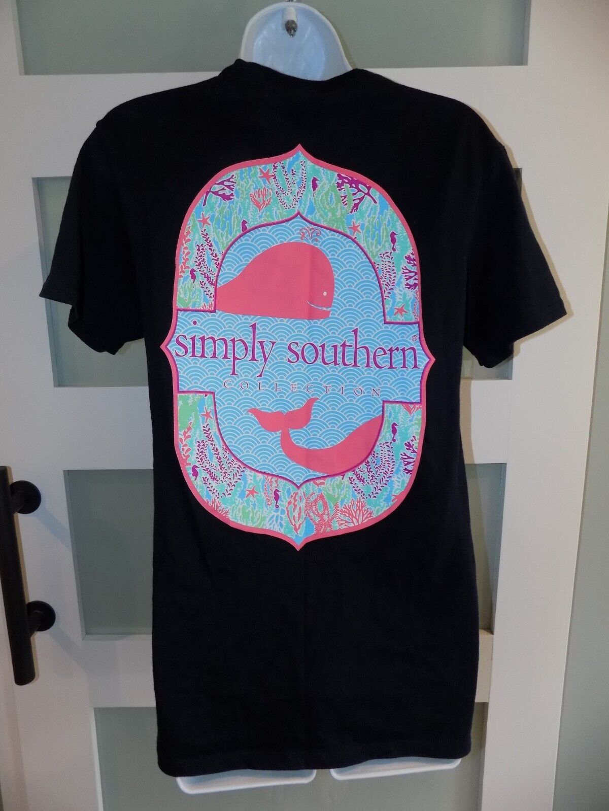 Simply Southern Whale Navy Blue SS T-Shirt Size S Women's EUC