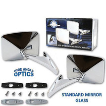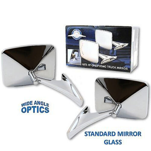 73-91 Chevy Truck Chrome Outside Rectangle Convex Rear View Door Mirrors Pair