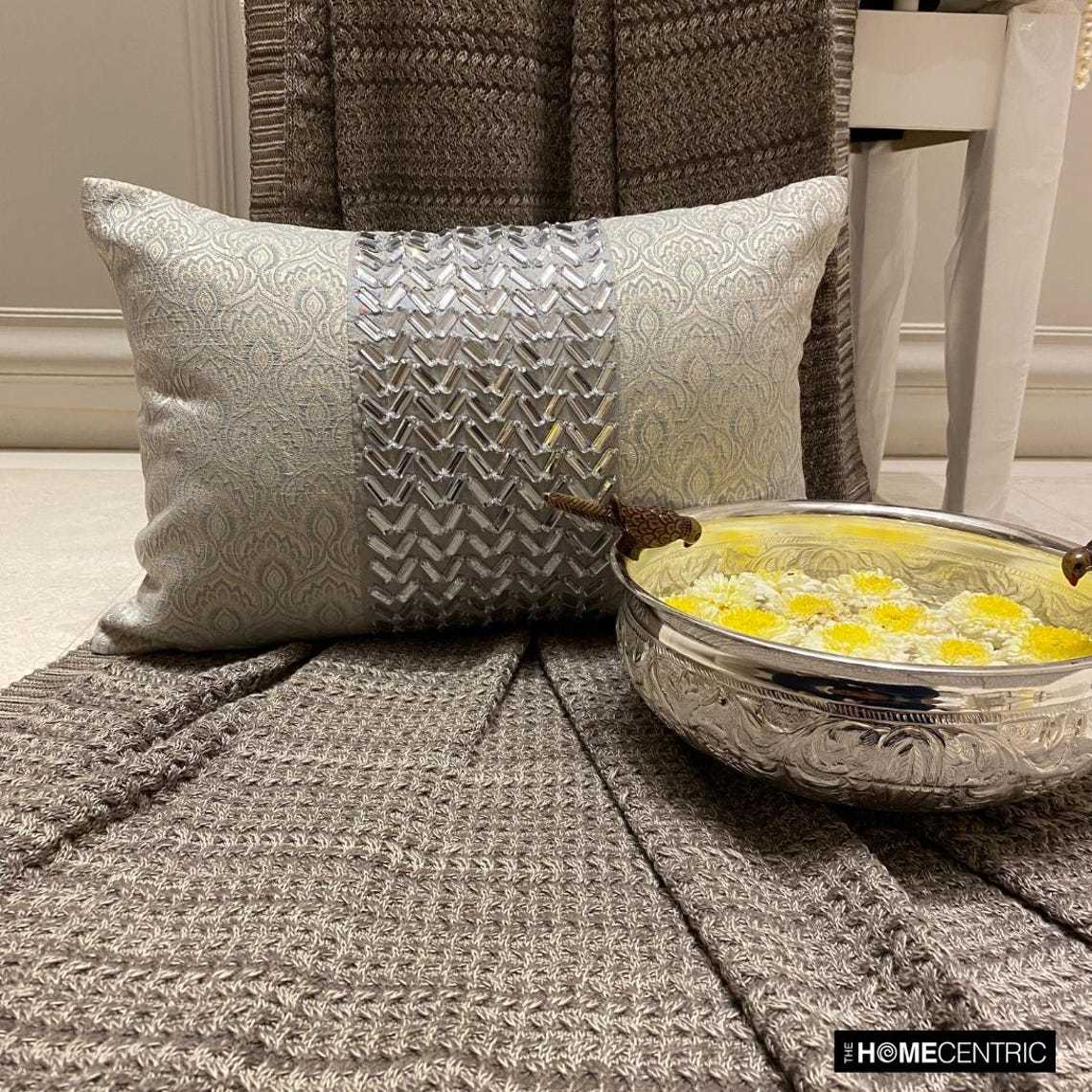 Jeweled Esme - Silver Jacquard Lumbar Pillow Cover