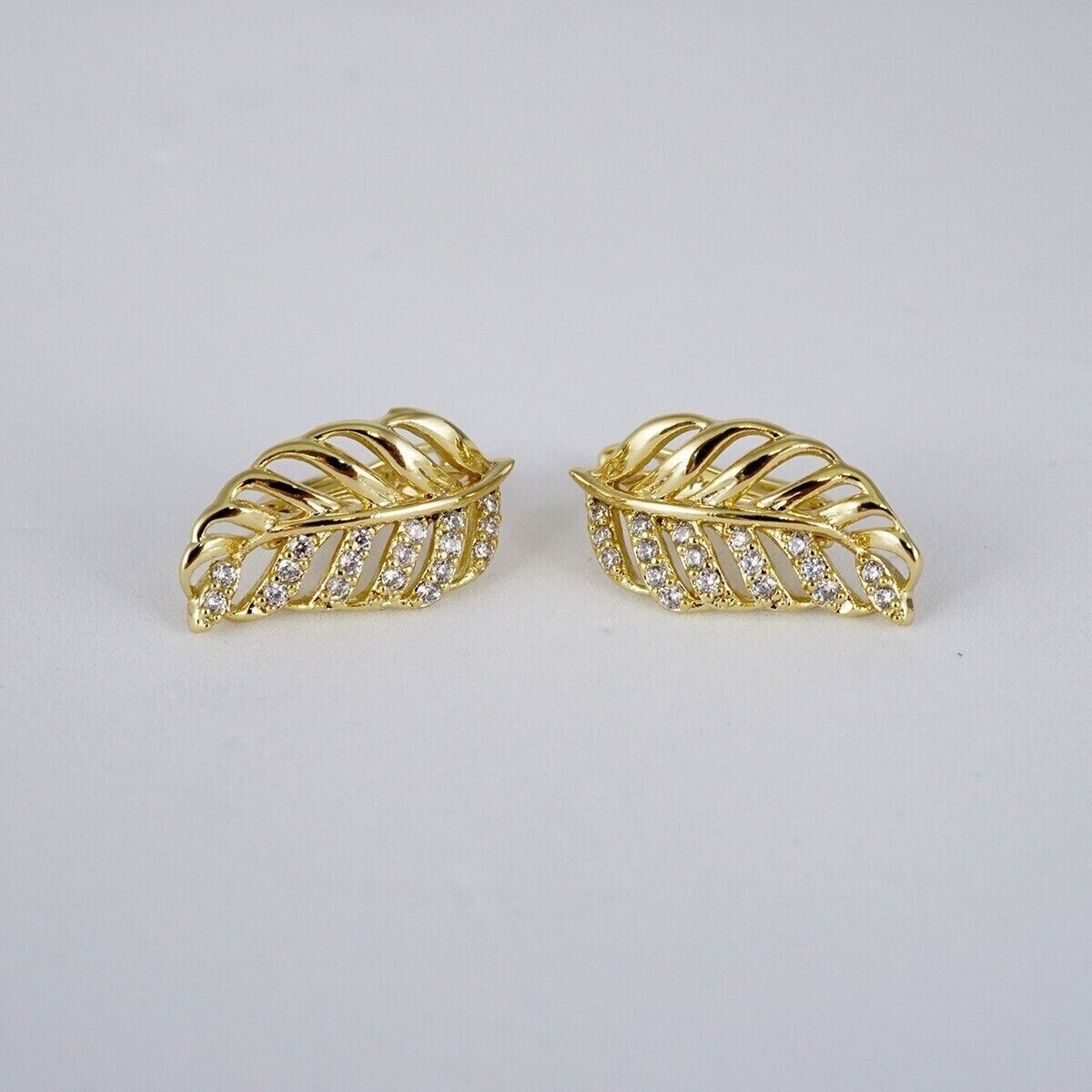 0.30Ct Round Lab Created Diamond Leaf Shape Stud Earrings 14k Yellow Gold Plated