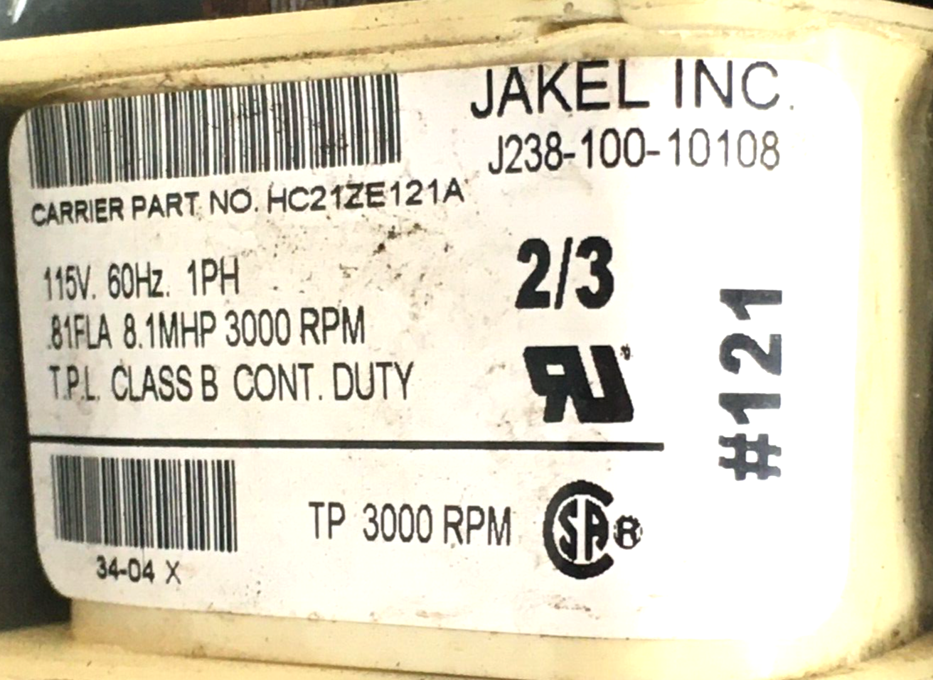 This is JAKEL J238-100-10108 Draft Inducer Blower Motor HC21ZE121A used previously, refurbished part, excellent working condition.
