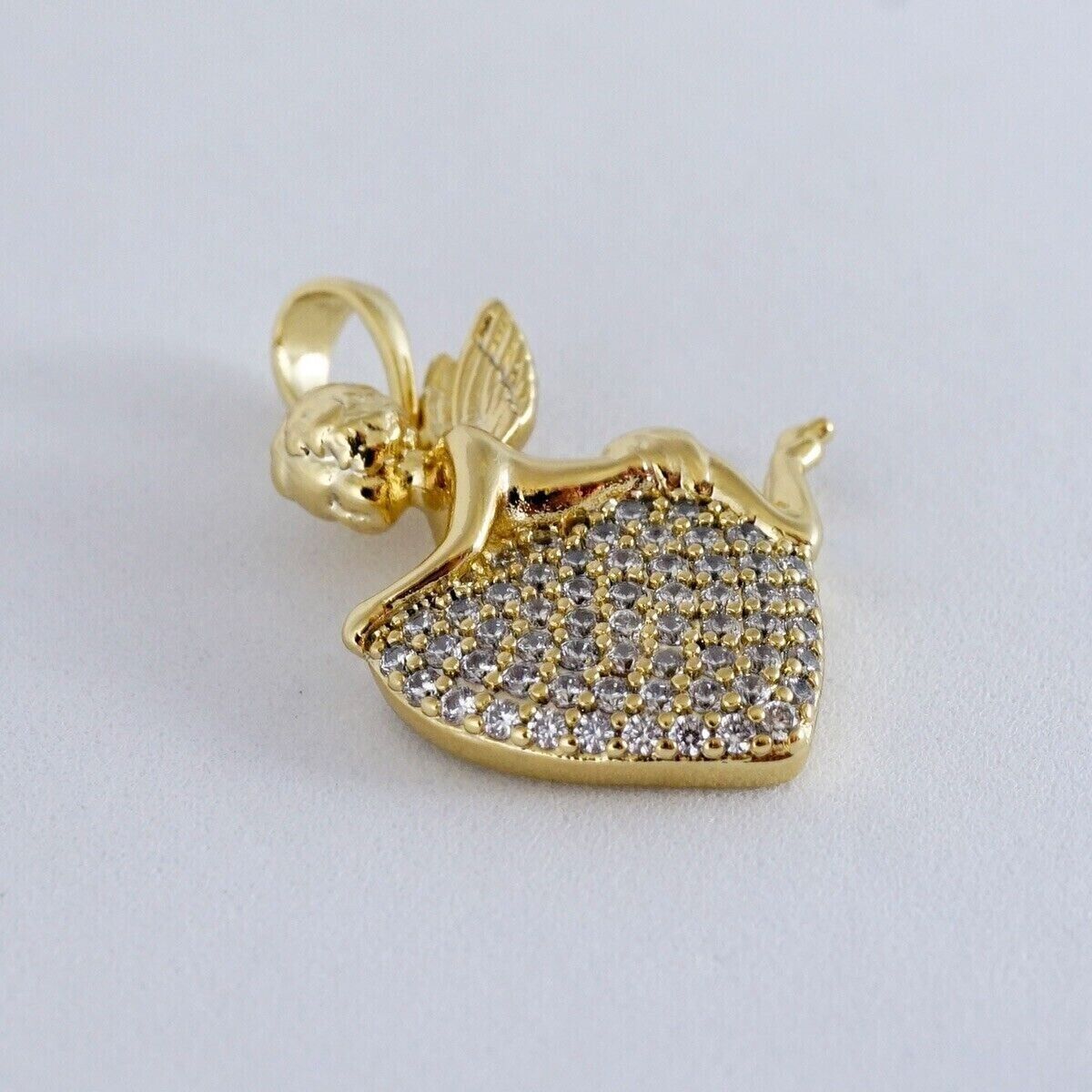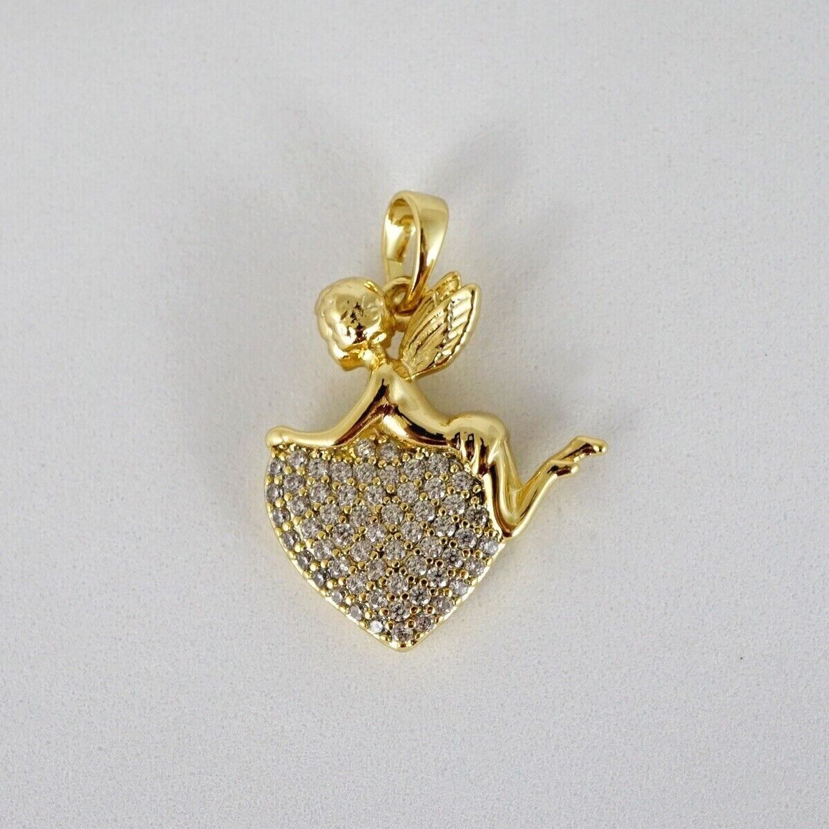 1CT Lab-Created Pave Set Diamond Angel With Heart Pendant 14k Yellow Gold Plated