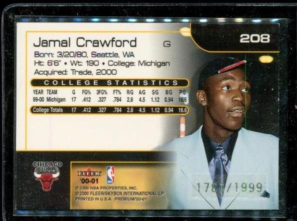 2000-01 Fleer Premium 1780/1999 Jamal Crawford #208 Rookie RC Basketball Card