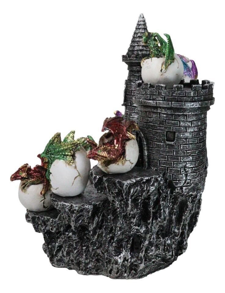 ? Introducing the Hatchling Dragons by Mountain Stonewall Castle Display Set. This enchanting set features twelve vibrant, metallic-colored dragon hatchlings emerging from their eggs, each uniquely detailed and full of mythical charm. Nestled by a mountain and surrounded by a medieval stonewall castle fortress, this display creates a captivating fantasy scene. Perfect for fantasy enthusiasts and collectors, this figurine set brings the magic of dragon lore into your home.
