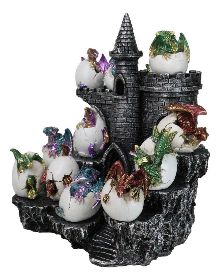 Medieval 12 Mini Dragons In Eggs On Mountain Stonewall Castle Display Stand Set