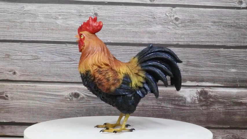 ? This Rooster Chicken Figurine is made of designer composite resin, hand painted and polished. Color Tone may vary