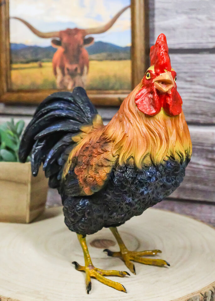 Rustic Western Proud Country Chicken Rooster In Stately Pose Figurine 8"Tall