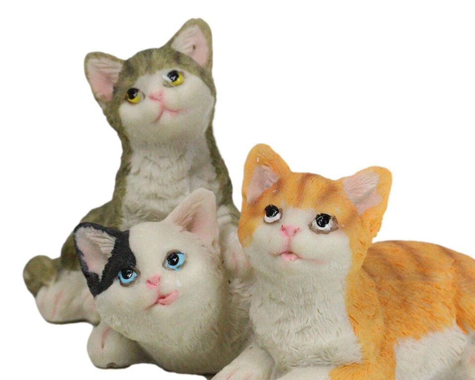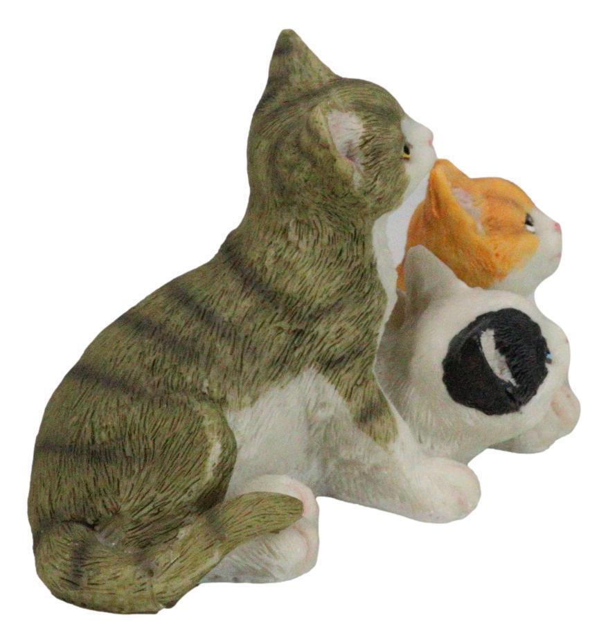 Lifelike Adorable 3 Calico Grey Tabby Colorful Kitten Cats Cuddling Figurine
