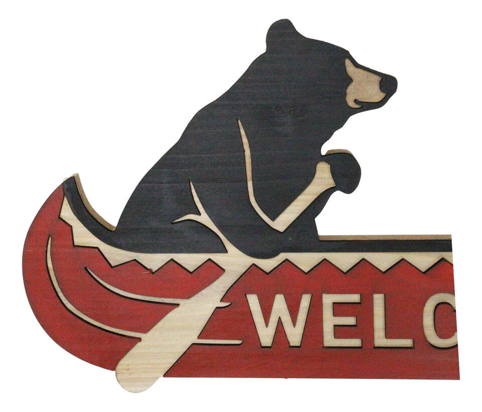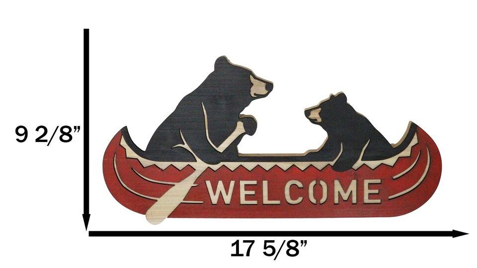 ? Welcome the great outdoors into your home with our Father Bear With Cub Rowing Red Canoe Boat Welcome Decor Plaque! This enchanting plaque captures the heartwarming scene of a father bear and his cub navigating a serene river in a vibrant red canoe. Handcrafted with rustic charm, it features intricate details and a welcome sign that's perfect for any cabin or country home. Made from MDF wood with a rustic finish, this plaque adds a touch of adventure and warmth to your entryway.