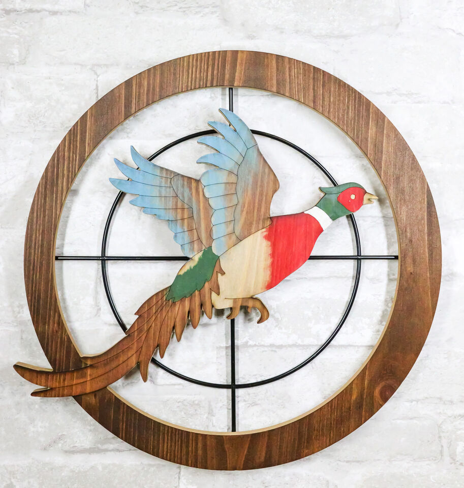 Rustic Pheasant Bird Hunting in Scope Crosshairs Hunting MDF Wood Wall Decor
