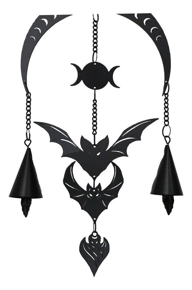 ? Add a touch of eerie elegance to your decor with this Flying Bats with Phases of the Moon Wall Hanging Decoration. Expertly crafted from black-coated steel, this dramatic piece features a captivating scene of flying bats silhouetted against the phases of the moon. The intricate design evokes a sense of dark mystery and gothic allure, making it a perfect addition to any space seeking a touch of the macabre.