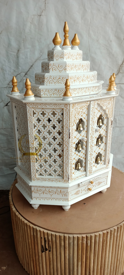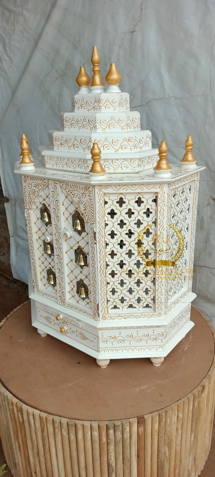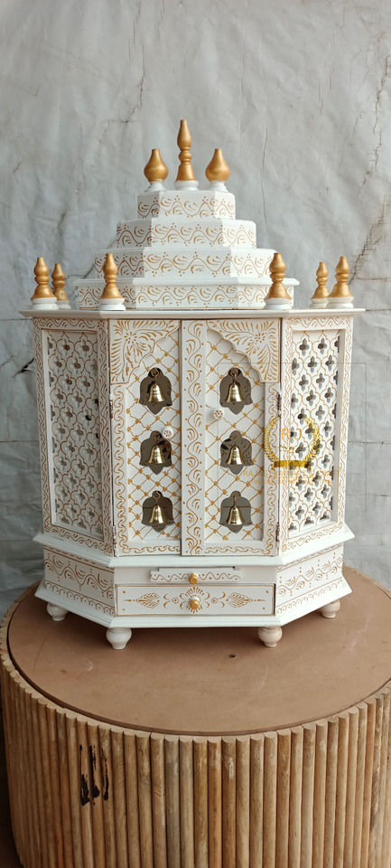 wooden temple white and gold Mandir Pooja Ghar Mandap For Worship home Temple