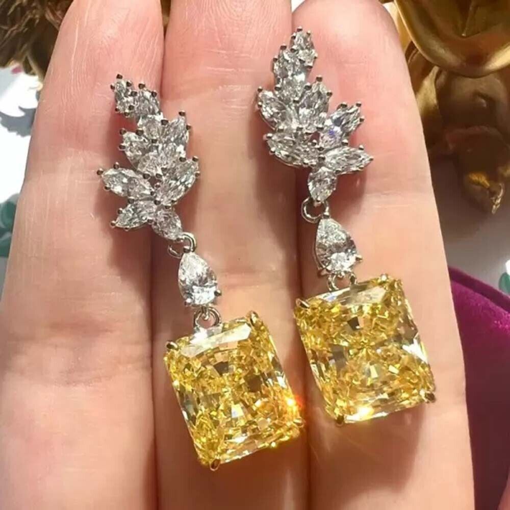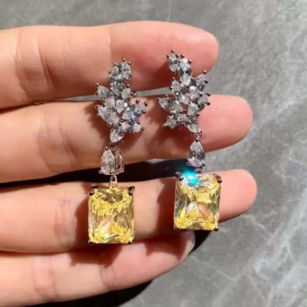 9.50 Ct Lab Created Sapphire & Diamond 14K White Gold Plated Women Drop Earrings
